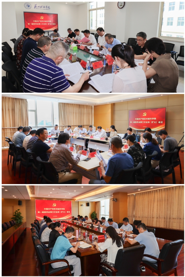 9月2日下午,中国共产党苏州城市学院第一届委员会第三次全体(扩大)会议在综合楼多功能厅举行。全体校领导,校党委委员、纪委委员,全校在职副处职及以上干部,部门临时负责人,二级学院党政负责人,县(区)级及以上党代表、人大代表、政协委员,校各民主党派代表、无党派人士代表参加会议。全会由校党委常委会主持。