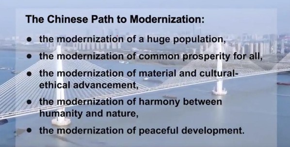 立足新的历史方位,以中国式现代化全面推进中华民族伟大复兴,以中国智慧促进世界共同发展,是强国建设、民族复兴的康庄大道,也是谋求人类进步、世界大同的必由之路。