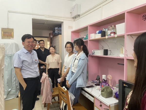为切实了解2023级新生入学情况,及时了解学生的思想、学习、生活动态,9月9日下午,校党委常委、副校长、光学与电子信息学院院长(兼)高雷,光学与电子信息学院党委书记冒维东,副院长陈蕾、钱敏带队走访2023级新生宿舍,物理与能源系主任马英壮、学院全体辅导员陪同走访。