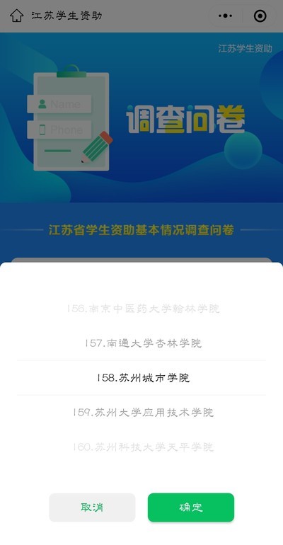 4.填写调查问卷时,学校请选择“158”号“苏州城市学院”。