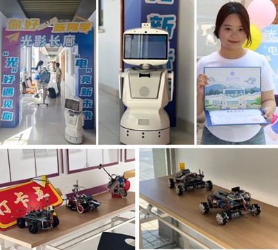 学院“光影长廊”门口出现了一位特殊的嘉宾——智能机器人“YoYo”,这是学院给新生准备的“见面礼”。“光影长廊”展示了近3年研究生录取情况和近2年科研竞赛情况,及学生科技竞赛作品和重点竞赛项目介绍,展现了学院人才培养成果、学生创新精神和意识,以及学生精益求精的工匠精神。通过科技迎新,让新生感受到学院人才培养的特色,激起奋发有为向复兴的动力。