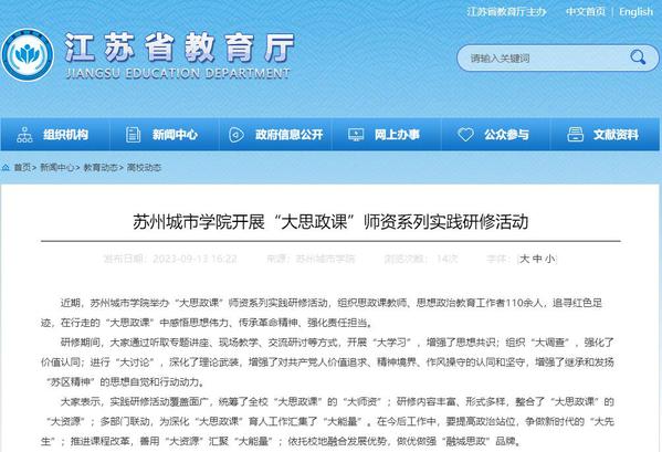 近期,苏州城市学院举办“大思政课”师资系列实践研修活动,组织思政课教师、思想政治教育工作者110余人,追寻红色足迹,在行走的“大思政课”中感悟思想伟力、传承革命精神、强化责任担当。