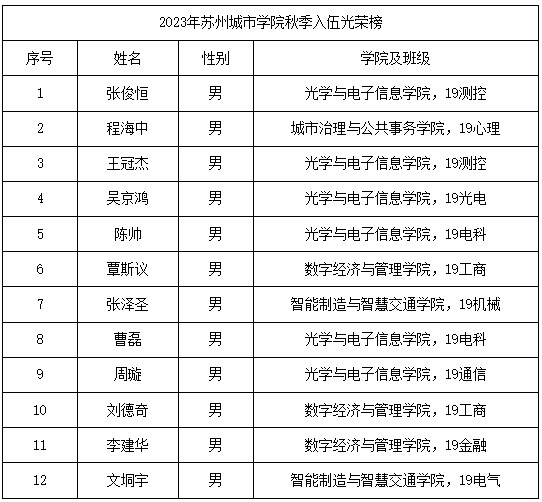 今年,我校共有38名适龄大学生报名参加2023秋季征兵体检,最终来自光学与电子信息学院、城市治理与公共事务学院、智能制造与智慧交通学院、数字经济与管理学院的12名男生和2名女生通过身体检查、政治考核、心理测试环节。14名入伍大学生除1名女生为在校生外,其他均为2023应届毕业生。