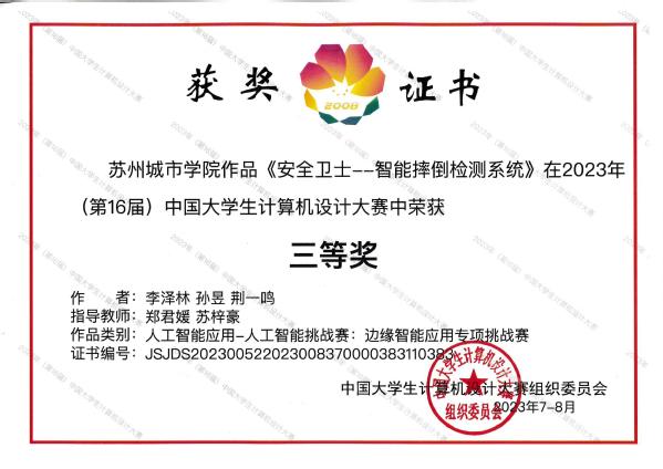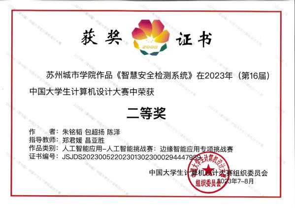 近日,第16届中国大学生计算机设计大赛在扬州大学成功举办,我院郑君媛老师、实验室建设与管理中心苏梓豪老师一同带队参赛。光学与电子信息学院两支队伍成功闯入国赛,并荣获“人工智能应用”赛道国家二等奖1项、国家三等奖1项。