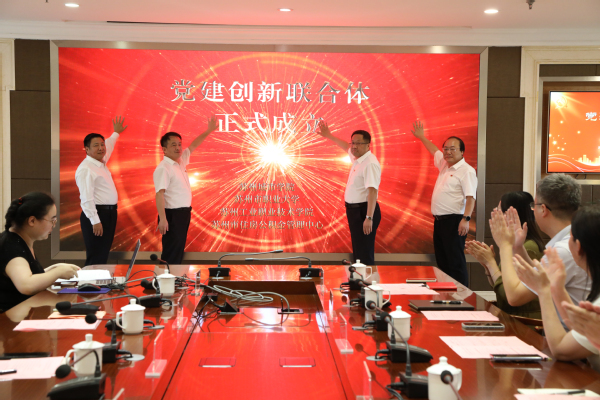 苏州市公积金中心联合苏州城市学院、苏州市职业大学、苏州市工业职业学院成立“党建创新联合体”,四方共筑组织基础、共促队伍建设、共办民生实事、共谋创新发展,芮国强、曹毓民、王洪法、何静清上台共同启动“党建创新联合体”。