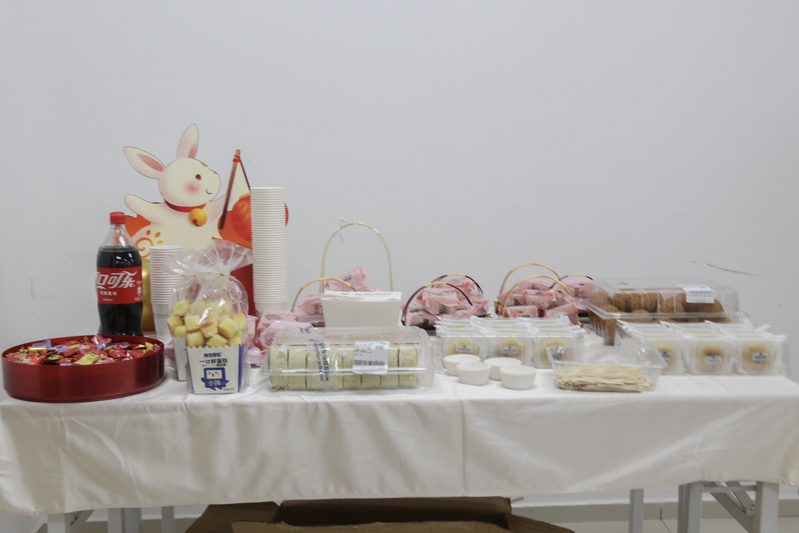 活动现场热闹非凡,或是耐心指导,或是相互协作,喜悦与和谐之情溢于言表。学校工会还为教职工准备了中秋美食,在游戏间隙,享受休闲时光。