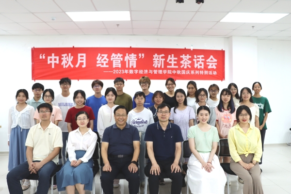 在“中秋月,经管情”新生茶话会上,校党委常委、副校长、数字经济与管理学院院长(兼)周高,数字经济与管理学院党委副书记尹维军,2023级新生班主任以及新生代表参与其中。座谈会由尹维军主持。