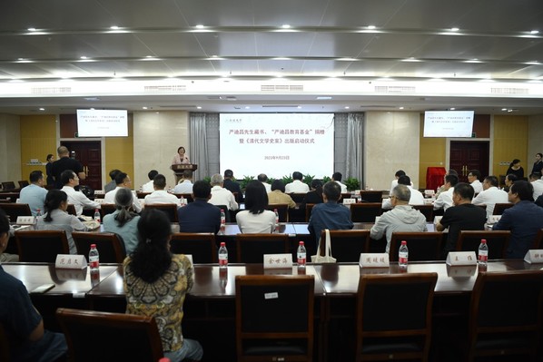 此次活动中,严迪昌先生后人捐赠严先生所藏古籍共计46部209册。这些藏书包含了众多清代文人的著作、评论和研究,汇集了百余种签赠本,是一部鲜活的清代学术史,也是一部立体的学人交流史。在当日的活动中,由严弘捐资的“严迪昌教育基金”同步设立,用于奖励优秀学生和赞助贫困家庭子弟。此外,上海古籍出版社推出的《清代文学史案》正式启动。《史案》以精选案例展示了清代文学发展的历程。