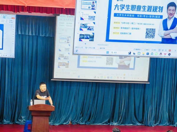 为帮助我校学生更好地了解考研、考公、留学等就业问题,做出适合自己的选择,10月10日晚,我校联合研途教育于学术报告厅开展大学生职业生涯规划课讲座。此次讲座的主讲嘉宾是研途教育联合创始人、青年人生规划导师张雪峰,面向2021、2022级学生,并邀请2023级班委观摩。