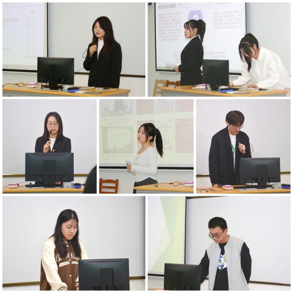 各参评学生分会充分结合本学院特色,通过PPT从思想引领、组织建设、成长服务、校园文化、媒体宣传五个方面进行汇报演讲,充分展现了各学院的独特风采,用实际行动诠释全心全意为同学服务的宗旨。其中,光学与电子信息学院学生会注重思想引领,开展“学习党的二十大,永远跟党走,奋进新征程”主题活动,组织学生会工作人员多元化学习培训;智能制造与智慧交通学院学生会纵深改革,精简组织架构,不断推进学生自我教育、自我管理、自我服务、自我监督;数字经济与管理学院学生会积极开展“我为同学做实事”活动,围绕课程学习、考研和就业等方面开展“学长学姐帮帮帮”——学业帮扶系列活动;计算科学与人工智能学院学生会发挥专业特长,开展网页设计大赛暨科创文化节等系列特色活动;城市文化与传播学院学生会持续推进新媒体运营,展示学院独特魅力,增强校院班之间的网络互动交流,提升学院文化影响力;设计与艺术学院学生会致力于展示同学们对当代艺术的密切关注和执着追求,举办航空文化艺术节暨第一届“空乘之星”大赛等活动;城市治理与公共事务学院学生会贴近同学生活学习实际,加强校院宣传联动,引导广大同学深入了解和参与政治生活。