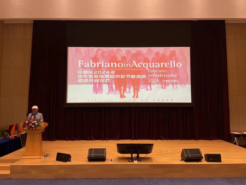 接下来是“中国区2024年法布里亚诺国际水彩节邀请展”邀请开启仪式,设计与艺术学院党委副书记丁良超、专业教师刘宁教授作为嘉宾参加了邀请展的开启仪式。