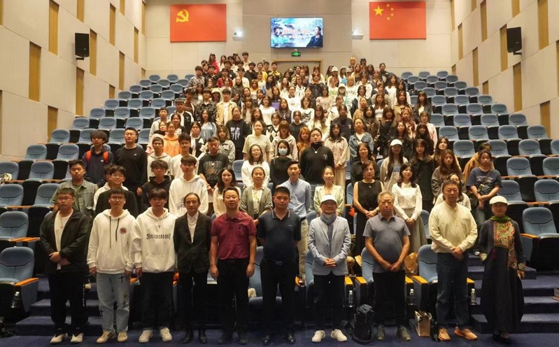 活动最后,嘉宾与师生们一起参观此次画展并合影留念。