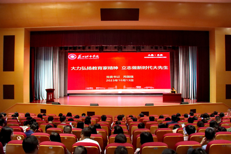 赵志宏校长发表了热情洋溢的讲话。他对各位新教师加盟苏州城市学院表示欢迎和祝福,在详细解读教育部印发的《新时代高校教师职业行为十项准则》和加强师德师风教育的系列文件后,他提出了三点希望:一是提高政治站位,增强行动自觉,切实增强“时不我待”的紧迫感和“功成有我”的使命感,在坚定理想信念上作表率,牢牢把握人才培养方向,争做一流高水平应用型大学的探路者;二是锤炼高尚师德,潜心立德树人,做到学为人师、行为世范,更好担负起培养时代新人的重任;三是涵养扎实学识,永葆乐教热忱,善于挖掘和培养教育教学能力和科学研究能力,以“敢为、敢闯、敢干、敢首创”的精气神,为学校的发展贡献自己的力量。