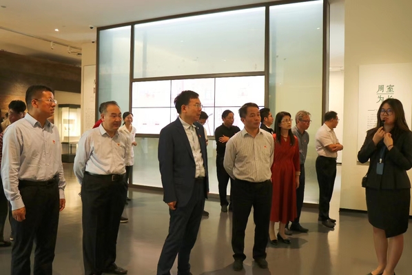 校党委理论学习中心组成员首先参观了苏州市吴中区博物馆(苏州吴文化博物馆),陈曾路馆长接待并交流工作。中心组成员先后参观了“考古探吴中”“风雅颂吴中”“经典与范式:平城实力和云冈时代”展厅。大家认真听取讲解,从考古学的角度了解吴文化的源起、发展和特征,通过吴中的风物特产、吴地的精品文物、吴文化的传承等多角度感受吴文化的深刻内涵和变迁发展。参观过程中,大家时而驻足凝视,时而讨论交流,通过一件件珍贵藏品,感受吴地传统文化,回顾苏州在历史文脉传承和城市创新发展中走过的峥嵘岁月。