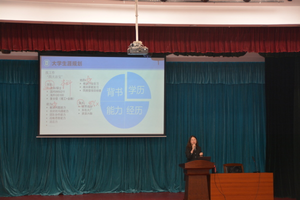 本次讲座邀请中信财经周仁燕老师作主讲,她首先引出了大学生的生涯规划方向,总结就业与考研的关系,提出了考研是为了更好地就业,并在就业方面展开了系统讲解并提出意见。