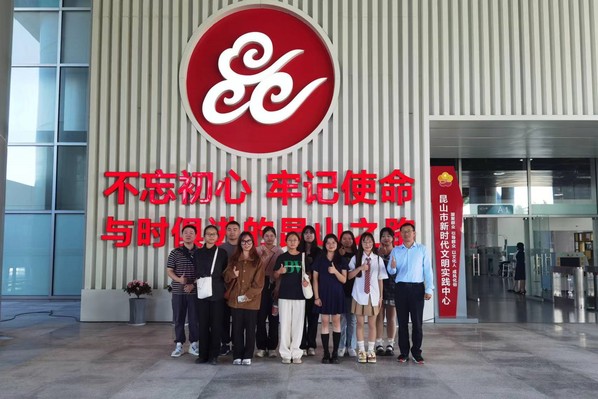 10月18日下午,为贯彻落实“融城思政”的教育教学特色,推进新时代弘扬“三大法宝”虚拟仿真实验课程建设,苏州城市学院马克思主义学院副院长唐强奎、博士王者愚和22级社会保障班级的学生代表前往昆山市科技文化博览中心,参观学习了“与时俱进的昆山之路”成果展。