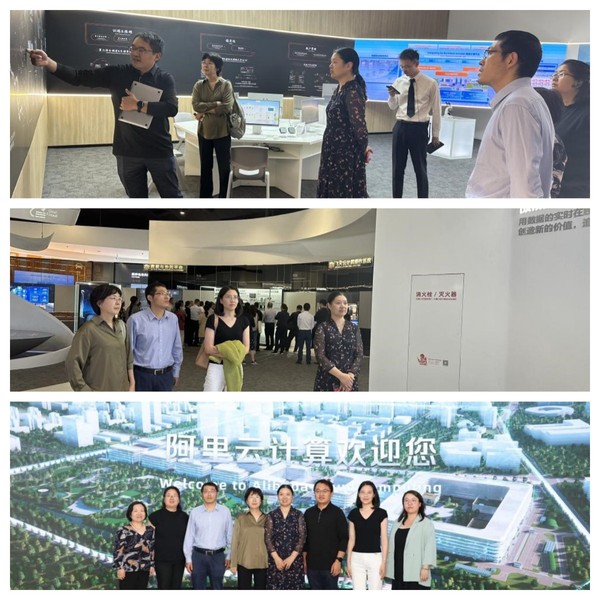 随后,我校一行来到阿里巴巴集团阿里云参观学习。郭伟杰带领我们参观并详细介绍了阿里云科技展馆,深度了解飞天云计算操作系统、通义千问应用、阿里云平台数据存储及应用场景,切身感受科技的魅力和创新的力量。紧接着,双方基于阿里云平台应用于我校人工智能产业学院建设、数字教材开发、线上实训平台等领域展开深入交流研讨。