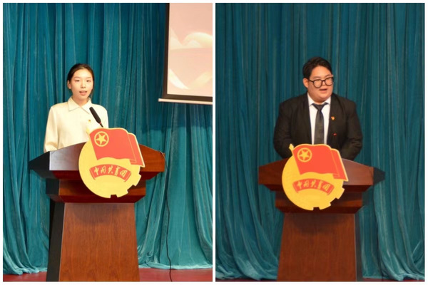 “青马工程”和“青禾计划”学员代表陶韶君与张勇俊作经验分享。他们结合自身学生干部经历,呼吁各位学员们把握培训机会,提升自身综合素质,充分发挥一名学生干部的热量,将自身的激情传播和散发给身边的每一个人,让自己身边的人也成为“青年马克思主义者”。