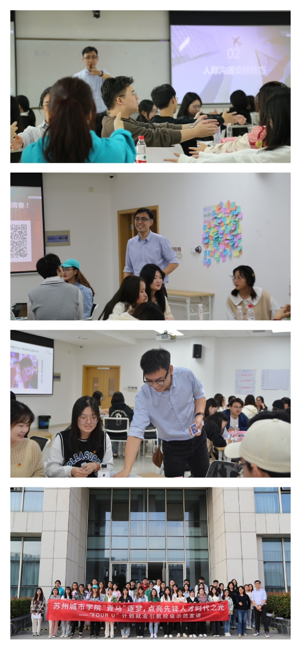 10月21日至22日,苏州城市学院“‘青马’逐梦,点亮先锋人才时代之光”校级示范宣讲课在综合楼122顺利举办。此次课程邀请到外企德科职业锚认证讲师张瑜博士和外企德科苏州特聘专家黄逸林,两位老师从“职业生涯规划”和“人际交往沟通”两个模块给同学们带来了生动详细的示范课程。