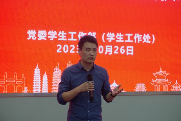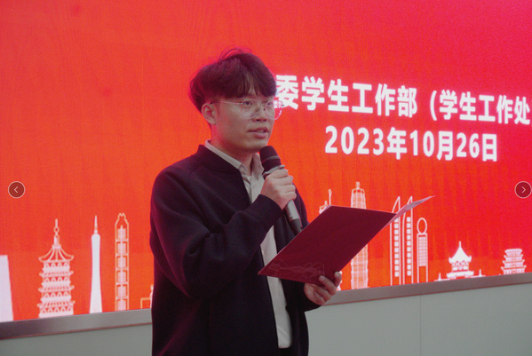 党委学生工作部(学生工作处)综合科(国防教育中心)副科长(副主任)帅凯老师介绍我校2023年春学期文明宿舍及宿舍文化节获奖情况,并宣读获奖名单。