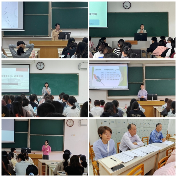 曾妍老师主讲《心理咨询学》,通过阐述倾听的内涵,解释倾听的重要性,课程中融入思政元素,以古文中繁体字“听”和“圣”同根同源从而启发学生们学会倾听。徐丹丹老师主讲《外国文件与档案管理》,主要围绕档案学重要理论来源法则的定义、形成及发展过程展开课堂教学。让学生理解档案理论的发展进程、不同国家在理论完善过程中的促进作用以及引导学生思考档案工作实践变化如何对外国档案学理论的发展产生影响。课程中提出国内外档案法规、条令也显示出综合档案馆的建立过程,是公民享有依法利用档案的权利的有力探索,展示课程思政的政治导向。朱健辰老师主讲《公司法》,以公司的设立为课程主线进行教学,引导学生掌握公司法关于公司设立的法律制度,采用案例使学生区分重难点。结合公司设立与营商环境的关系,融入课程思政教育。丁航老师主讲《社会保险》,竞赛主题是医疗保险领域中道德风险的规避措施,结合我国医疗保险制度改革,解释如何从政策设计环节规避医患双方的道德风险,有效配置医疗资源。对费用控制的六种思路这一混淆点,采取学生提问的方式增加记忆点,培养学生启发式思维。张梦婉老师主讲《法学导论(法理学)》,将思政要素贯穿在课堂教学中,选取具有浓厚思政要素的典型案例、事例,在分析解决问题过程中,培养学生透过规则适用将思政内容运用到社会生活的素养。着重引导学生理解法律规则的基本知识和原理,把握法律规则与法律条文的关系,能够运用相关知识和理论对法律规则、法律条文进行分析和适用。