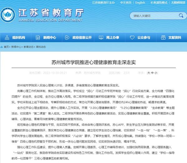 苏州城市学院深入实施心理育人计划,多渠道、多维度推动心理健康教育走深走实。