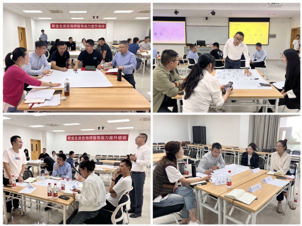 培训环节,参会咨询师分成四个小组进行讨论交流,培训内容主要分为理论讲解和实操演练两个部分。在理论讲解部分,张彤岩主要从理论基础与概念澄清、生涯咨询的核心技巧、生涯咨询的经典流程三大方面展开讲解,帮助咨询师熟悉生涯理论发展过程,掌握六大生涯理论的使用情境,明晰职业生涯咨询与心理咨询的区别,规范生涯咨询的基本流程。在实操演练部分,张彤岩带领咨询师以小组为单位进行咨询情境模拟,充分利用“倾听、总结、提问、诠释、区分”五大生涯咨询核心技巧,从真实案例切入探究决策类、非决策类、定位、发展、转型、平衡六种常见生涯问题的解决策略。
