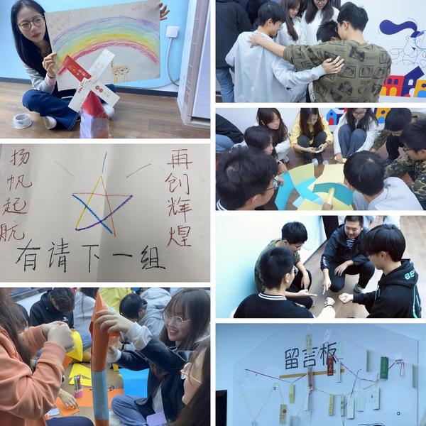 沈怡佳以“成长五部曲”游戏导入,快速打破同学们沟通的“壁垒”,引导同学们理解心理委员的工作性质。随后,她带领各团队开展本次“航海之行”,从“团队初识”到“队伍组建”到“风暴来临”到“合作搭屋”,成员在环环相扣、层层深入的游戏中逐步建立信任,感受团队的力量。在“共筑希望”中,各小组打破小组局限,共同写下对彼此对自身的祝福。最后集体在歌曲《海阔天空》中以温馨而有内聚力的氛围告别本次团体辅导。