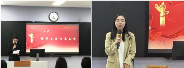 在庄严肃穆的国歌声中,制交院第一届学代会正式会议拉开序幕。首先由娄嘉琦同学发言,她指出,一直以来我院学生会始终牢记自身使命,聚焦思想引领,纵深推进自身改革,服务同学成长成才,各项工作取得了新的成绩,并希望我院学生会以本次大会的召开为新起点继续努力,为推进中国现代化建设、实现中华民族伟大复兴的中国梦贡献青春力量。