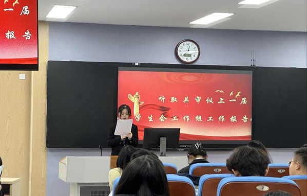 全体会议正式开始。首先由上一届学生会负责人王丹雯同学代表学院学生会工作组作《运筹“制”胜决千里,纵横“交”通创未来,团结引领制交学子奋力谱写时代新篇》的工作报告。报告中指出,我院学生会全面贯彻习近平新时代中国特色社会主义思想,积极响应学院党委和校学生会的工作要求,紧密围绕学院中心工作,强化思想引领,纵深推进改革,融合服务育人。着力搭建文体建设平台,坚持以美化人,以体润心,以劳树德,充分发挥第二课堂实践育人作用,通过团课引领、典型示范、科技竞赛、传统文化等助力学生成长成才。报告最后展望我院学生会再接再厉,努力向一流学生组织迈进,助力学院培养高素质应用型工程技术人才,为学校建成国内一流高水平应用型大学贡献力量。