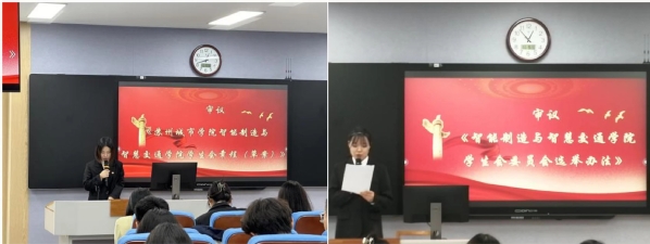 会议伊始,林洁茹老师宣布智能制造与智慧交通学院第一届学生代表大会会议正式开幕,本次会议分为预备会议、正式会议和全体会议三个议程。