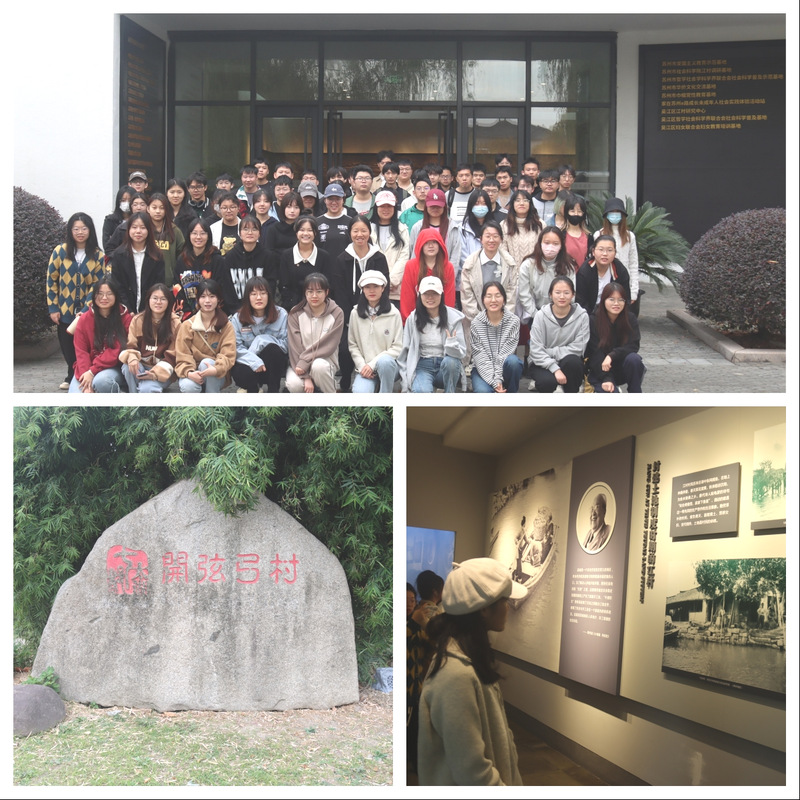 上午,同学们参观了位于苏州市吴江区七都镇的开弦弓村。开弦弓村是全国乡村治理示范村和江苏省文明村,20世纪30年代,社会学家费孝通在这里写出著名的《江村经济》,“江村”成了开弦弓村的代名词。同学们来到位于开弦弓村中心位置的江村文化园,先后参观了费孝通江村纪念馆、江村历史文化陈列馆和费达生江村陈列馆,并听取了工作人员的讲解,了解了江村文化、蚕桑文化、吴越文化。在“一点一路”廉政景观道,大家途经乡村法官驿站、江村大礼堂、江村景观台、太湖清风苑等地,在优美舒适的村居环境中实地感受村容村貌,深入了解江村的历史文化与发展步伐,深切体会费老的爱国、爱民情怀以及对学术的崇高追求,深刻感受他一生淡泊名利、勤俭自持的优秀品质。