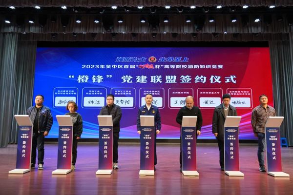 活动中,全体人员观看吴中区消防救援大队五周年专题汇报片。刘锐与6所高校相关负责人共同进行签约。张利明为本次活动作总结发言。
