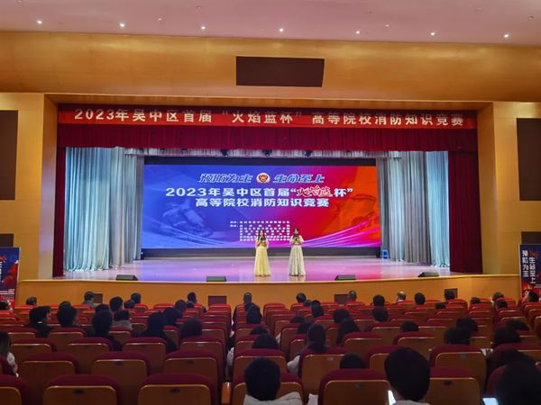 为进一步提升高等院校消防安全素质,普及消防安全知识,近日,吴中区消防救援大队在苏州城市学院举办2023年吴中区首届“火焰蓝杯”高等院校消防知识竞赛。此次竞赛共有6支队伍24名选手参加角逐。苏州城市学院校党委常委、副校长周高,吴中区消防救援大队大队长张利明、教导员刘锐等领导以及各高校保卫处负责人出席本次活动。