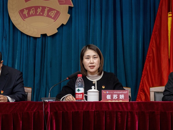 崔苏妍发表讲话,她代表校团委向大会的召开致以热烈的祝贺,向学院的团员青年们致以诚挚的问候和祝愿,并充分肯定了过去一段时间学院共青团工作取得的成绩。她指出,这次大会是在贯彻落实学校第一次党代会精神,瞄准学校第一次团代会确定的目标任务,推进二级学院团组织建设的起步阶段召开的一次大会,是全院青年学生政治生活中的一件大事,对于推进全校共青团工作高质量发展具有重大意义,希望学院的全体团员和青年要坚定政治立场,提高思想觉悟;要勇当时代先锋,绽放青春力量;要提升担当本领,积聚奋斗能量。