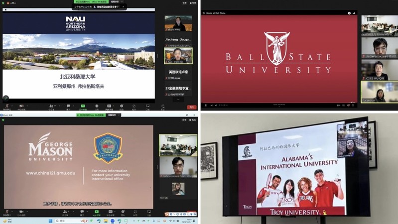 本次系列院校介绍会均于线上举行,来自美国北亚利桑那大学、鲍尔州立大学、乔治梅森大学、特洛伊大学的中国市场负责人、国际招生负责人、国际学生学术负责人、中国项目协调员等相关代表出席会议,为我校学生答疑解惑。院校代表分别对各自美方高校进行了详细介绍,包括办学历史、院系设置、地理位置、校园环境、项目学生录取要求和培养计划等。部分院校还邀请了国际学生代表分享了在美国学习的体验和收获,与我校同学交流互动。