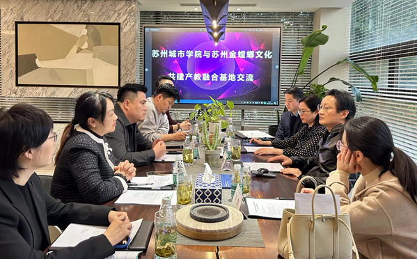 刘咏清分别从办学历史、办学理念、专业特色、师生作品、基础设施、发展规划等方面介绍了设计与艺术学院的基本情况。她表示苏州城市学院主动面向城市发展需求,聚焦“城市”“应用”“数字”“产业”等领域,深化教学改革,加强专业内涵建设,探索高素质应用型人才培养新模式,赋能未来城市发展,打造苏州设计,希望通过本次沟通,共同促进产教融合基地建设,在人才培养、科学研究、资源共享、社会服务层面展开深入合作。