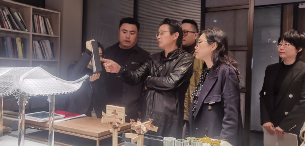 高珉带领大家参观了金螳螂文化公司的办公大楼、企业展厅、设计院办公区、材料展示区,最后回到会议室交流。高珉向姜院长一行介绍了企业的基本情况:金螳螂文化公司成立于2001年,是一家集设计、创意、艺术与研发为一体的文化科技企业,是国家高新技术企业、省重点文化科技企业、江苏省工程技术研究中心。公司承接的多个项目获得全国博物馆十大精品奖、鲁班奖、全国科技创新成果奖等荣誉。目前,公司已先后与7所高校建立了多种形式的校企合作。