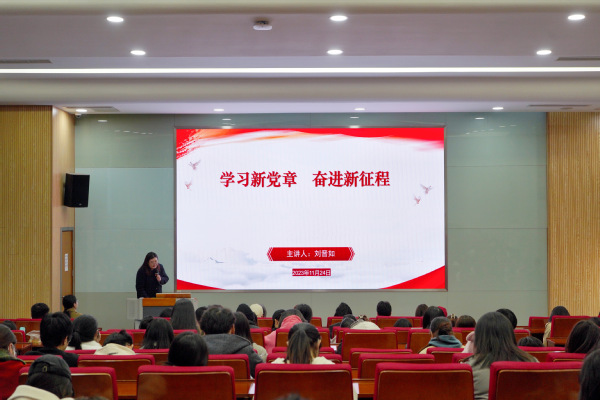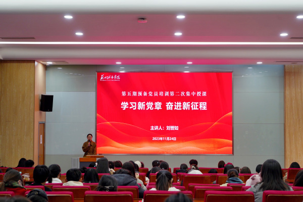 11月24日下午,我校第五期预备党员培训第二次集中授课在3-101教室举行。我校马克思主义学院刘晋如老师主讲,题目为《学习新党章 奋进新征程》。本次集中授课由党校饶琼老师主持。