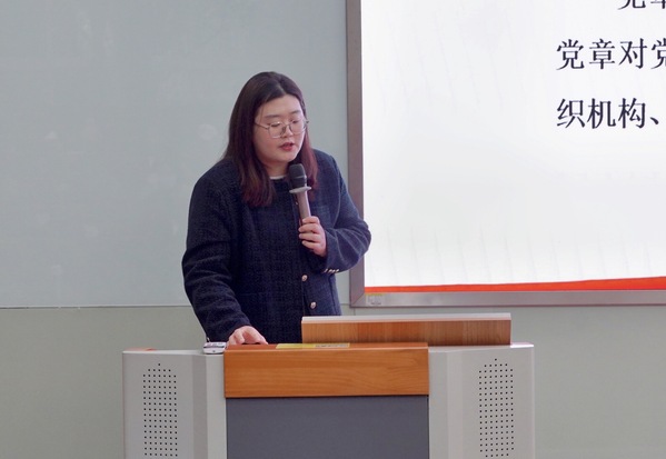 她首先阐述了党章的定义,还阐释了党章的三大作用:第一,党章体现了全党意志。第二,党章在党内具有最高权威性和最大约束力。第三,党章是管党治党的总规矩。接着,她仔细梳理了从1921年党的一大《中国共产党纲领》至党的二十大党章的发展历程。她指出一百年来,我们党根据形势和任务发展变化,共完成了18次党章修改。她强调,党章的每一次修改都反映出我们党对客观实际和客观规律认识上的深化,都是对党的实践经验的最新总结,能够在推进党的事业、加强党的建设中发挥重要指导作用。