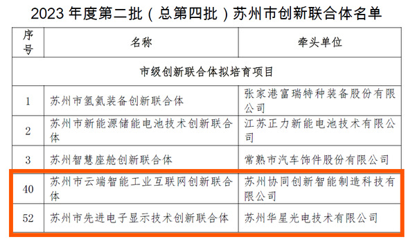 11月22日,我校参与申报的“苏州市云端智能工业互联网创新联合体”和“苏州市先进电子显示技术创新联合体”获得苏州市科学技术局“2023年度第二批苏州市创新联合体拟培育项目”。