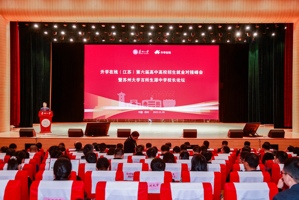 11月30日,高中高校对接峰会暨百所生源中学校长论坛在苏州大学天赐庄校区举行。本次峰会由苏州大学和升学在线联合举办,共同探讨新高考背景下,高校与高中协同育人、高校招生与人才培养、校企合作对接等热点话题。教育部思政司原一级巡视员俞亚东、苏州大学党委副书记邓敏、苏州市教育考试院院长李东升、升学在线董事长邵隆等出席峰会,来自省内外60余所知名高校、100余所重点高中以及省内部分地级市考试院、招生办领导近260名代表共同参会,我校招生就业处副处长宋丹受邀参会。