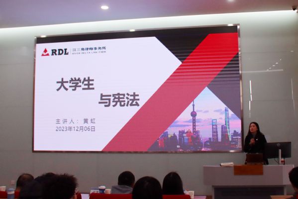 为深入学习宣传贯彻习近平法治思想,大力弘扬宪法精神,活动第一部分内容为大学生与宪法主题讲座。主讲人江三角(苏州)律师事务所资深律师黄虹,用通俗易懂的语言和生动详实的案例,从宪法的定义、宪法的作用、宪法与大学生的关系等方面,带领同学们学习宪法内容,强调了宪法对于保障公民基本权利、保持社会稳定、维护国家长治久安的重要意义,引导即将步入社会的同学们厚植爱国主义情怀,知宪于心,守宪于行。