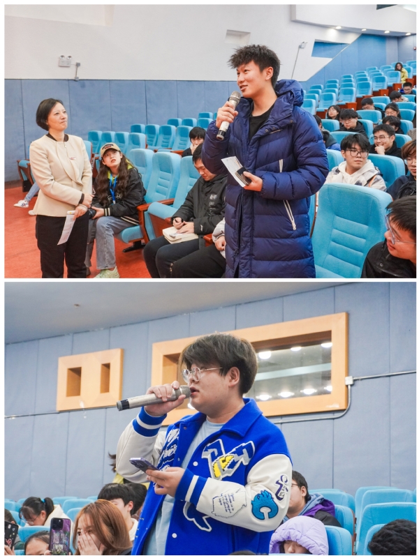徐峰首先以“你五年后的职业目标是什么?”向学生提问,唤醒学生的职业规划意识。通过与大家分享自己在国外的求职经历,引发同学们对大学生涯规划的思考与探索,帮助同学们发掘自身的核心价值。通过娓娓道来的叙述,启发大家学会看见自己、突破定势思维、转变职业视角,提示学生通过不断丰富技能储备,以提升与目标岗位需求的匹配度。讲座最后,徐峰鼓励同学们根据自己的初衷与追求,绘制属于自己的人生蓝图,以独特的课后命题使同学们对未来有了更多的期许。