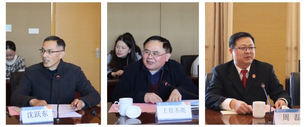 上官丕亮教授、各实践教学基地的代表畅所欲言,就高校法学专业建设、卓越法治人才培养模式、实践教学具体形式、合作开展学术研究及交流活动等方面进行了广泛交流和讨论。