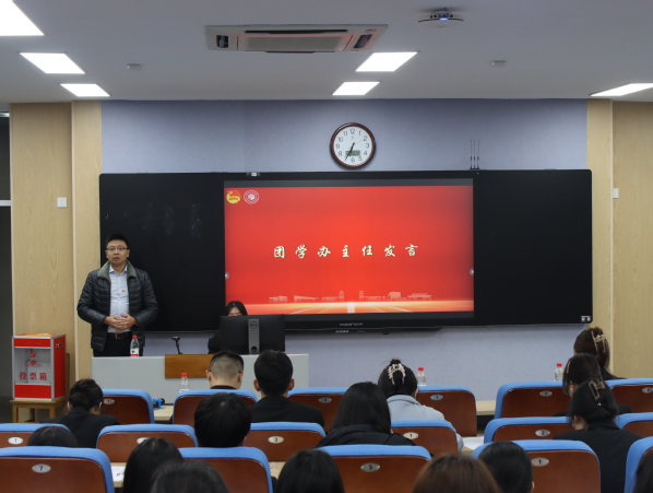 郭浩讲话,他指出,光学与电子信息学院学生会在学院党委的领导下和团委的指导下,积极推进学生会组织改革,在服务全院青年学生方面发挥了重要作用。同时,他对学生会以及学院青年提出三点希望:一是提升政治站位,做好党团助手;二是提升服务能力,繁荣校园文化;三是勇担时代使命,主动担当作为。