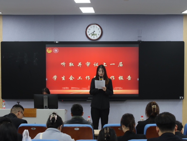 上一届学生会主席团成员管雪代表学院学生会工作组作题为《逐“光”追梦新未来,携手“电”亮新时代》的工作报告。报告指出,光学与电子信息学院学生会始终高举中国特色社会主义伟大旗帜,积极响应校团委学生会组织工作要求,紧密围绕学院中心工作,始终秉承“全心全意为同学服务”的工作宗旨,努力为广大青年学子的全面发展提供更为广阔的舞台。展望未来,学院学生会将继续团结引领光电学子,为学校建设特色鲜明、国内一流、国际知名的现代化高水平应用型大学贡献青春力量。