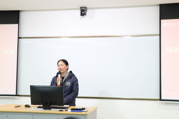 国际合作交流处(港澳台办公室)合作交流科科长邓小玲以《产教融合 科教融汇 促进我校人才培养高质量发展》为题,从科级干部培训心得与体会、人才培养高质量发展的思考与建议两个方面,重点介绍了教学科研组的课题成果。从加强产业属性的应用学科建设、加强双师双能型师资的引进培养等方面重点提出对策建议。