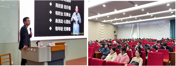 段老师首先抛出问题“如何度过大学四年或X年?”引发学生思考。他针对当前青年群体面临的心理困境,提出“躺平”与“内卷”是既相悖又相连的关系,揭示了当下青年群体的生存压力与心态失衡现象。随后,段老师分别从塑造积极心态和学会自我管理两方面引导学生培养成长型思维,学习自我管理策略和练习自我关怀。他强调,每个人都是成长型思维和固定型思维的混合体,而成长型思维更有利于人的成长和发展,当代大学生应当直面挫折、接受挑战,用成长型思维去理解、消融固定思维,充分挖掘自身潜能。讲座现场气氛热烈,师生互动交流积极有序。