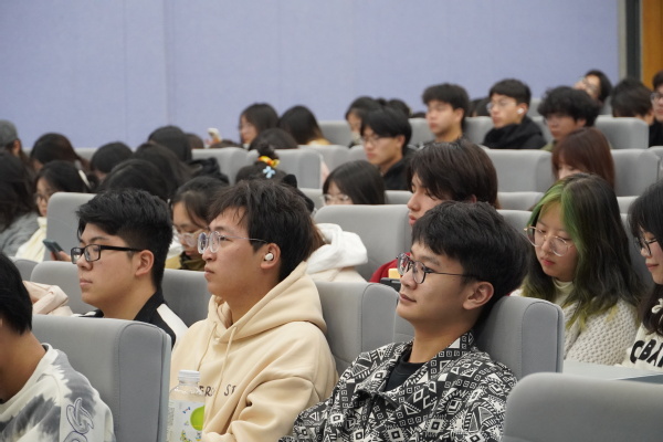 五位主讲人将自己的经历一一分享,并以“职责与担当”、“忠诚与使命”、“精神与传承”几个关键词鼓励同学们能够以一种不怕吃苦的精神去直面困难,锻炼自己,希望同学们在未来的日子里能够变得更加优秀。讲座现场,同学们认真倾听,心有感悟。随着一个个故事的展开,不时有喝彩声、感叹声发出,同学们沉浸在故事中,感受其中的酸甜苦辣。
